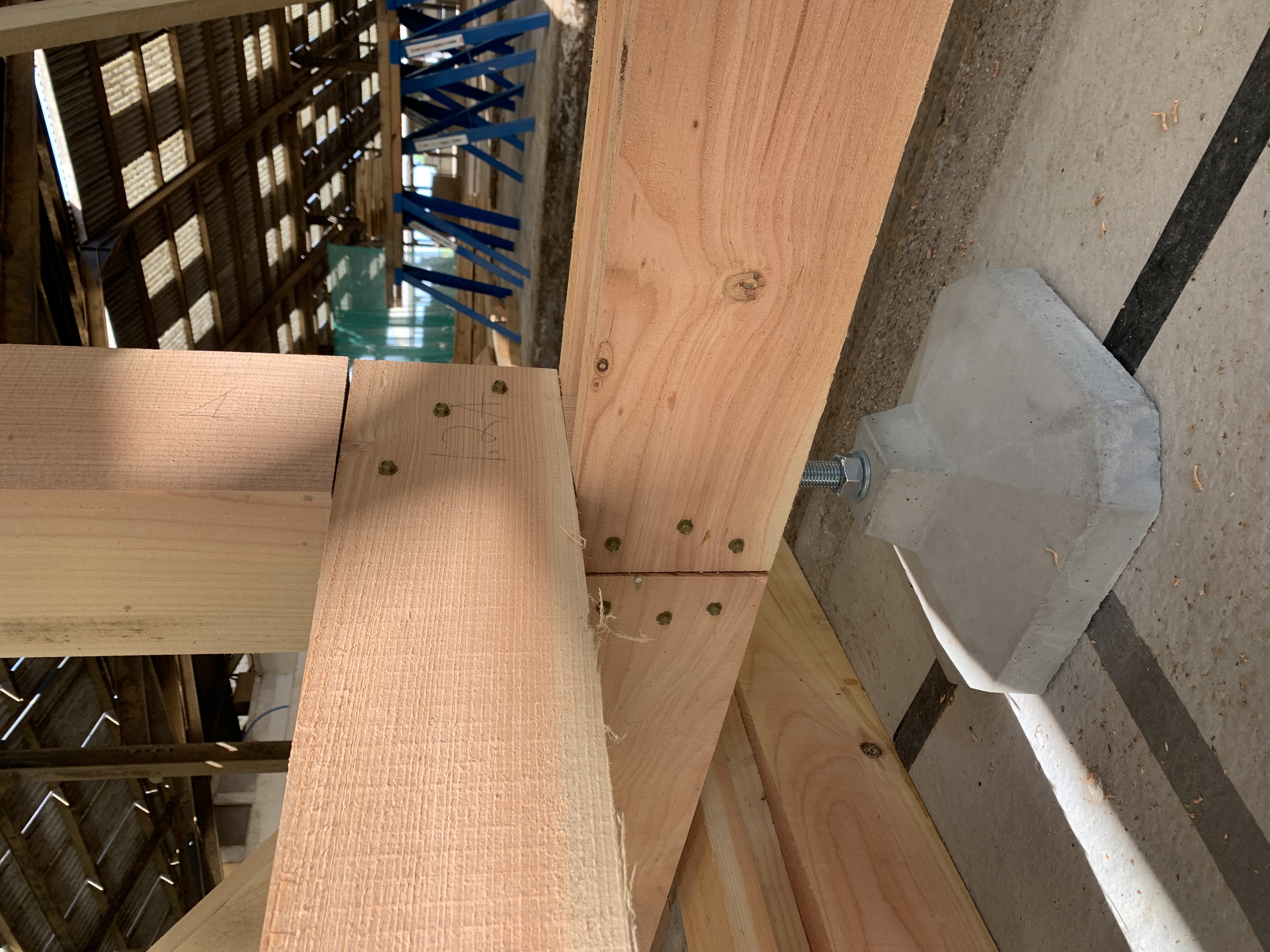 The pre-fabricated framing and wall panels were designed to be swiftly constructed as a strategy for affordability. The heavy timber frame was constructed out of Douglas fir in a post and twin beam system, assembled flat and tilted up by few people.