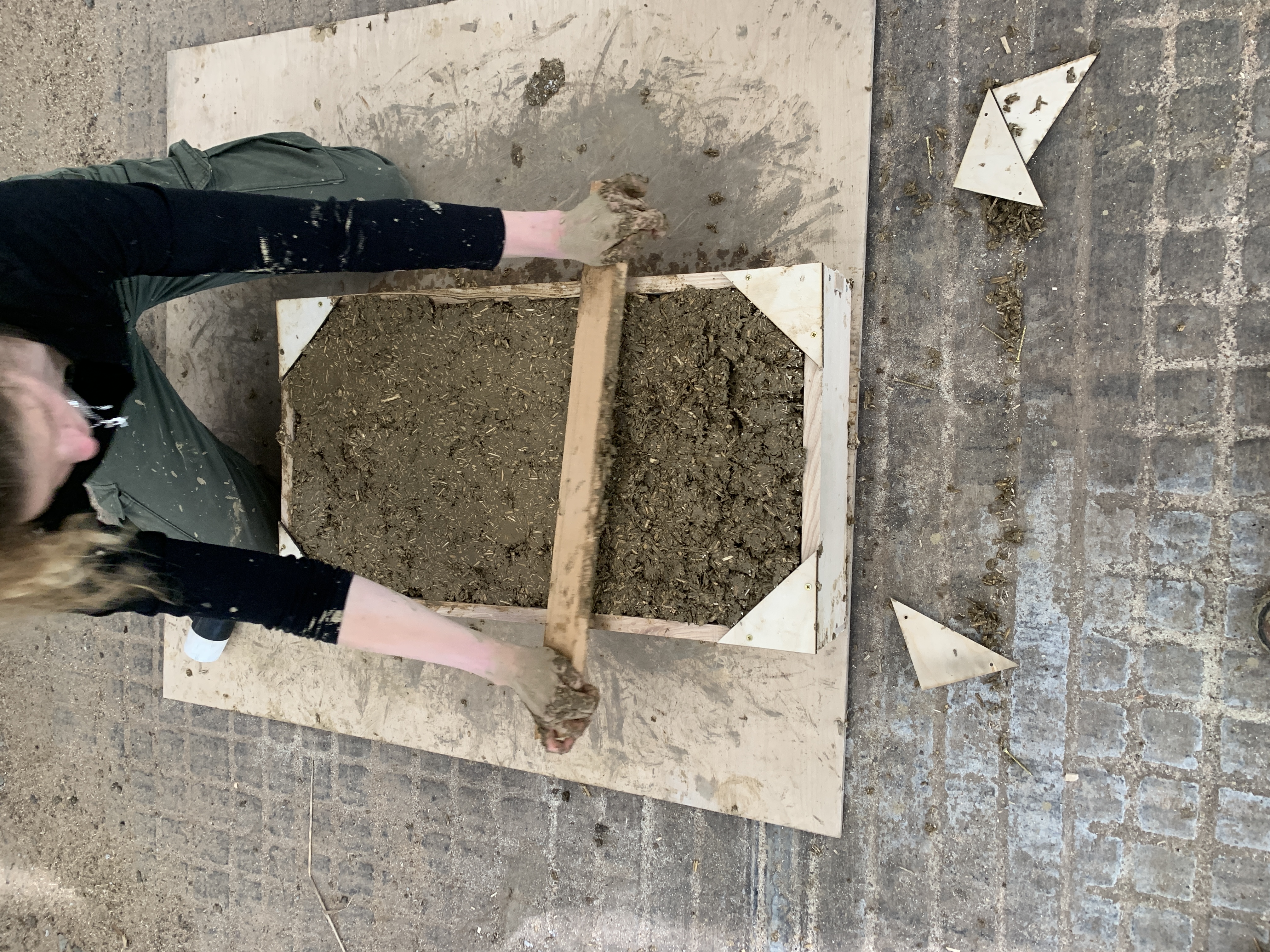 Various mixtures of hemp and clay from on site were casted into the cassettes to create a daub-like insulation buildup. Variables we tested here included drying time, shrinkage, the timbers response to moisture and feasability for self-build.