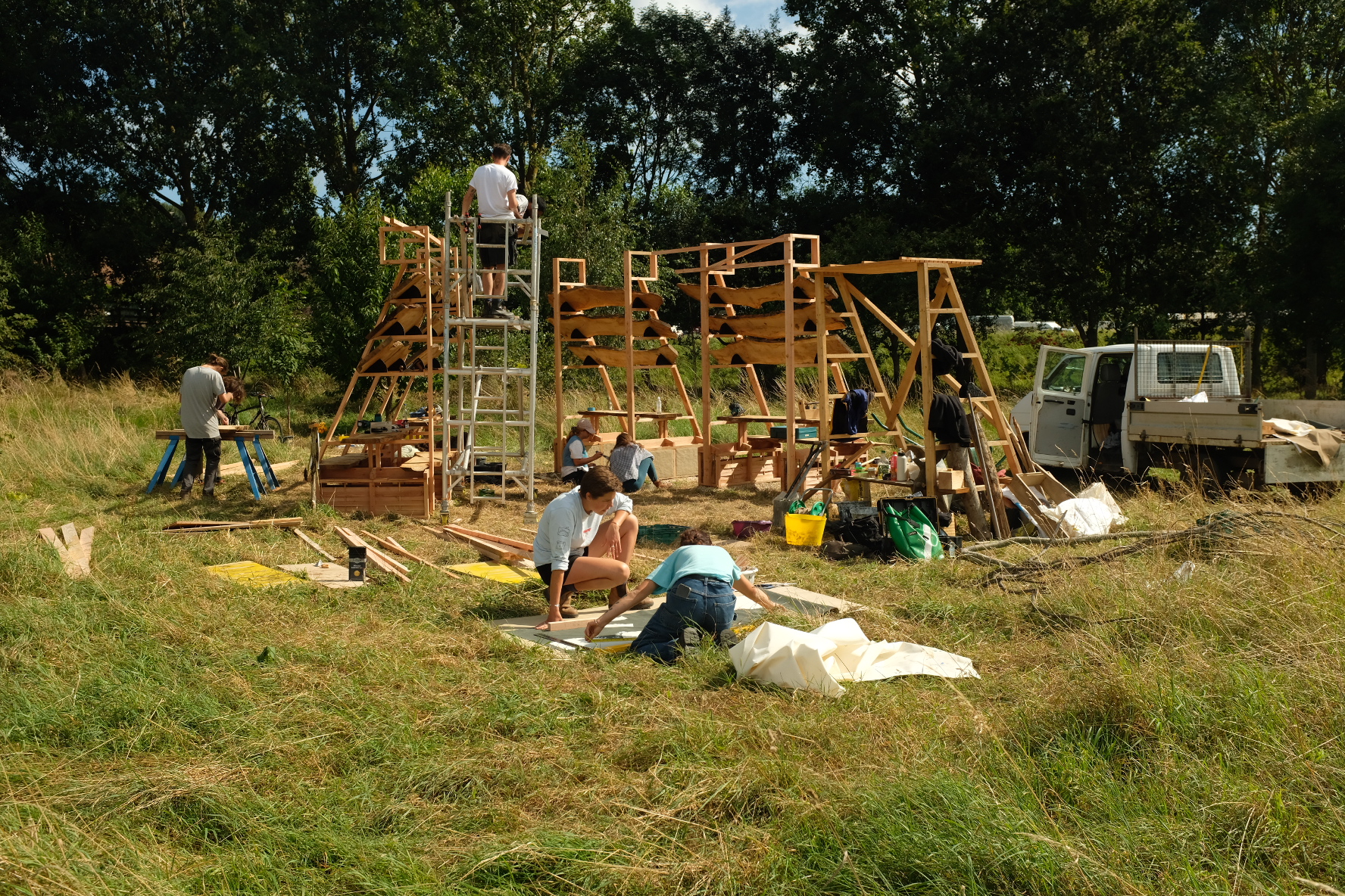 As part of Dorset Town Of Culture Bridport 24 we saught to celebrate all of this with a highly colaborative pavilion. Designed and built in 3 weeks with the generous help of many people (see final image). Our playful, educational, expansive methodology attempted to make every step of the design-build process as meaningful to as many people as possible.